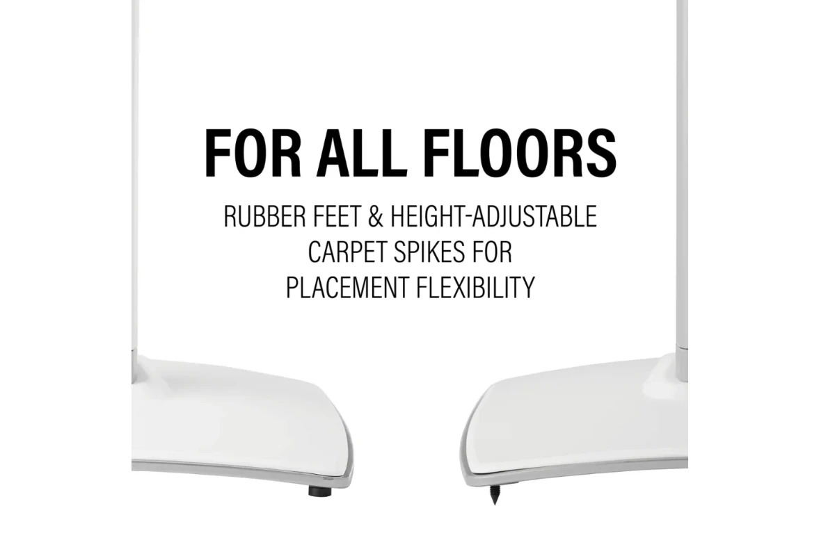 Includes rubber feet & height adjustable carpet spikes for any floor