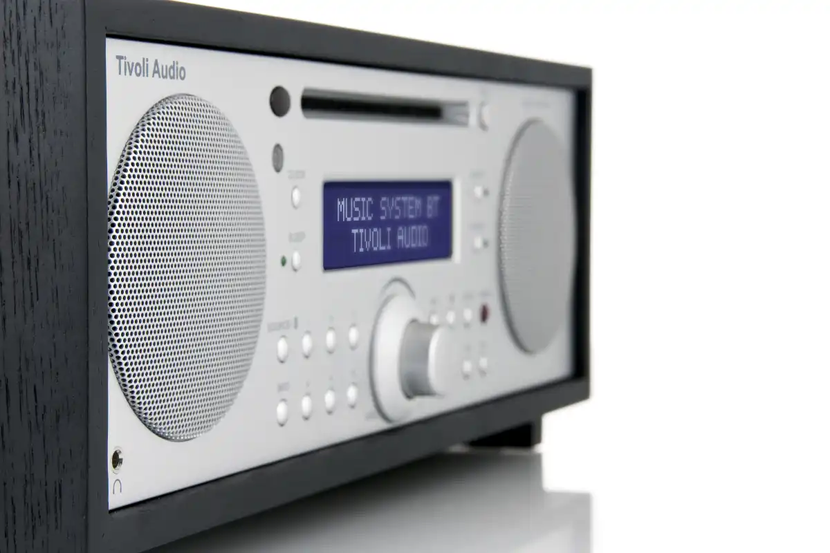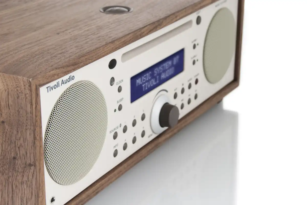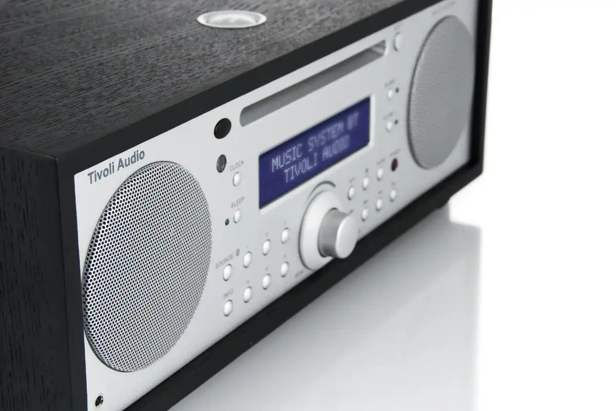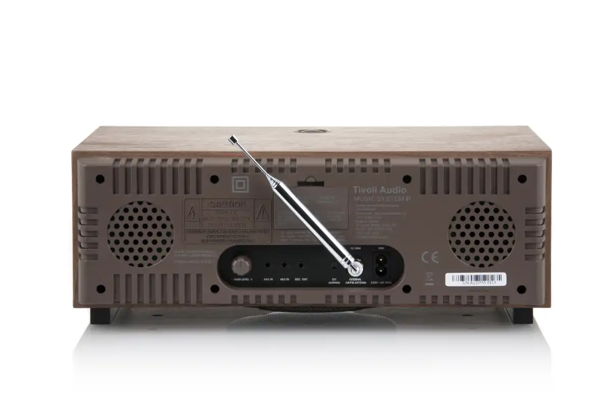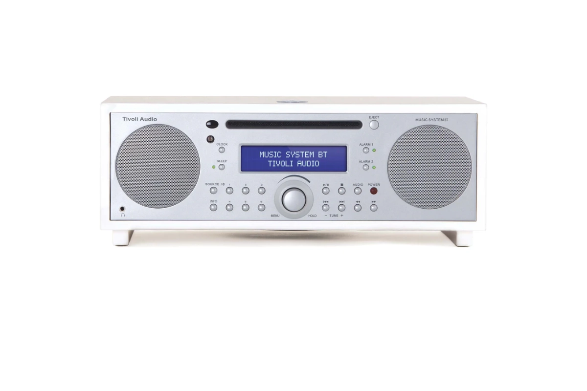 The Tivoli Music System Bluetooth is a compact yet powerful audio system that delivers exceptional sound. It features AM/FM radio, CD playback, and Bluetooth streaming, with enhanced bass from its down-firing subwoofer for a rich stereo experience. It includes an easy-to-read display, digital clock with battery backup, full-function remote control, snooze and sleep timers, and dual independent alarms. All of this is elegantly housed in a hand-crafted, real-wood cabinet, offering you a complete all-in-one audio solution.